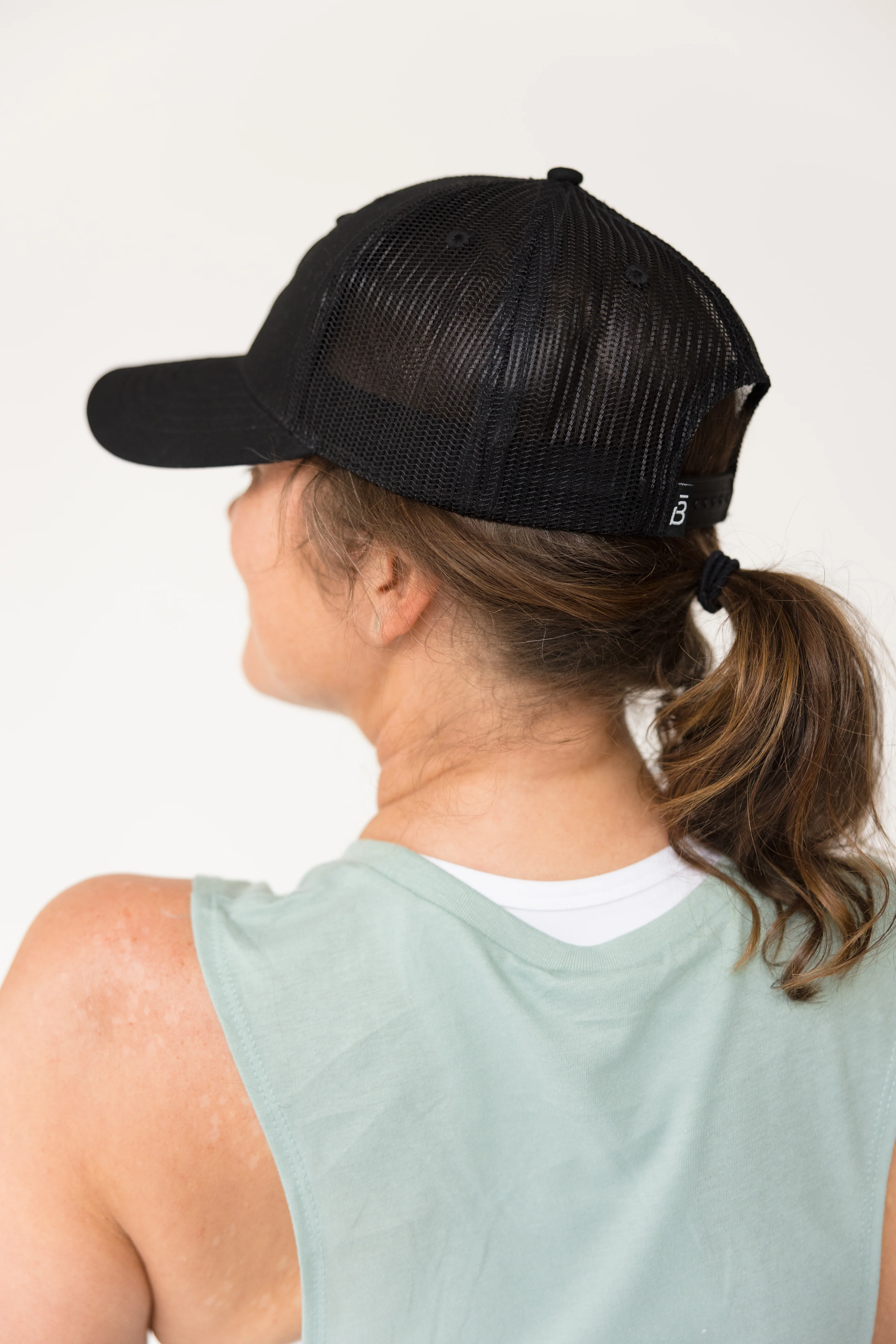 Taking your workout outside? This cute trucker hat has you covered. Breathable mesh back has an adjustable snap closure for a custom fit.